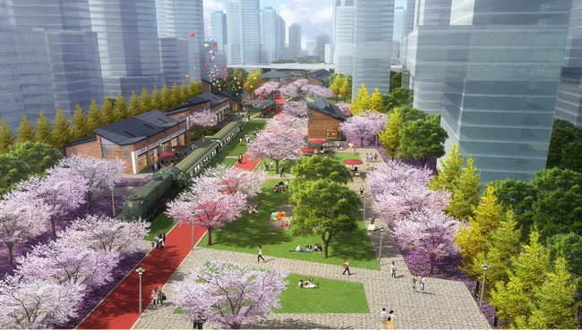 植樹活動結(jié)束,在項目總監(jiān)的帶領下,黨員和受邀代表參觀該項目的階段性成果。武昌生態(tài)文化長廊毗鄰長江南岸,南至武昌火車站,北至青山三環(huán)線,是連接武漢市內(nèi)環(huán)、二環(huán)、三環(huán)的綠色連廊,是長江主軸的重要組成部分。本項目通過對武九鐵路北環(huán)線功能化、景觀化、記憶化改造利用,變成鐵路遺址為鐵路文化公園,打造連接武昌區(qū)和青山區(qū)的生態(tài)文化長廊,建設世界級的城市公共空間,其中以四美塘鐵路文創(chuàng)公園,八大家創(chuàng)意工坊,青山智慧樂園為主題。
